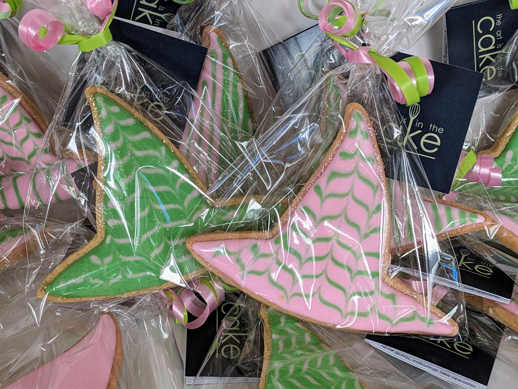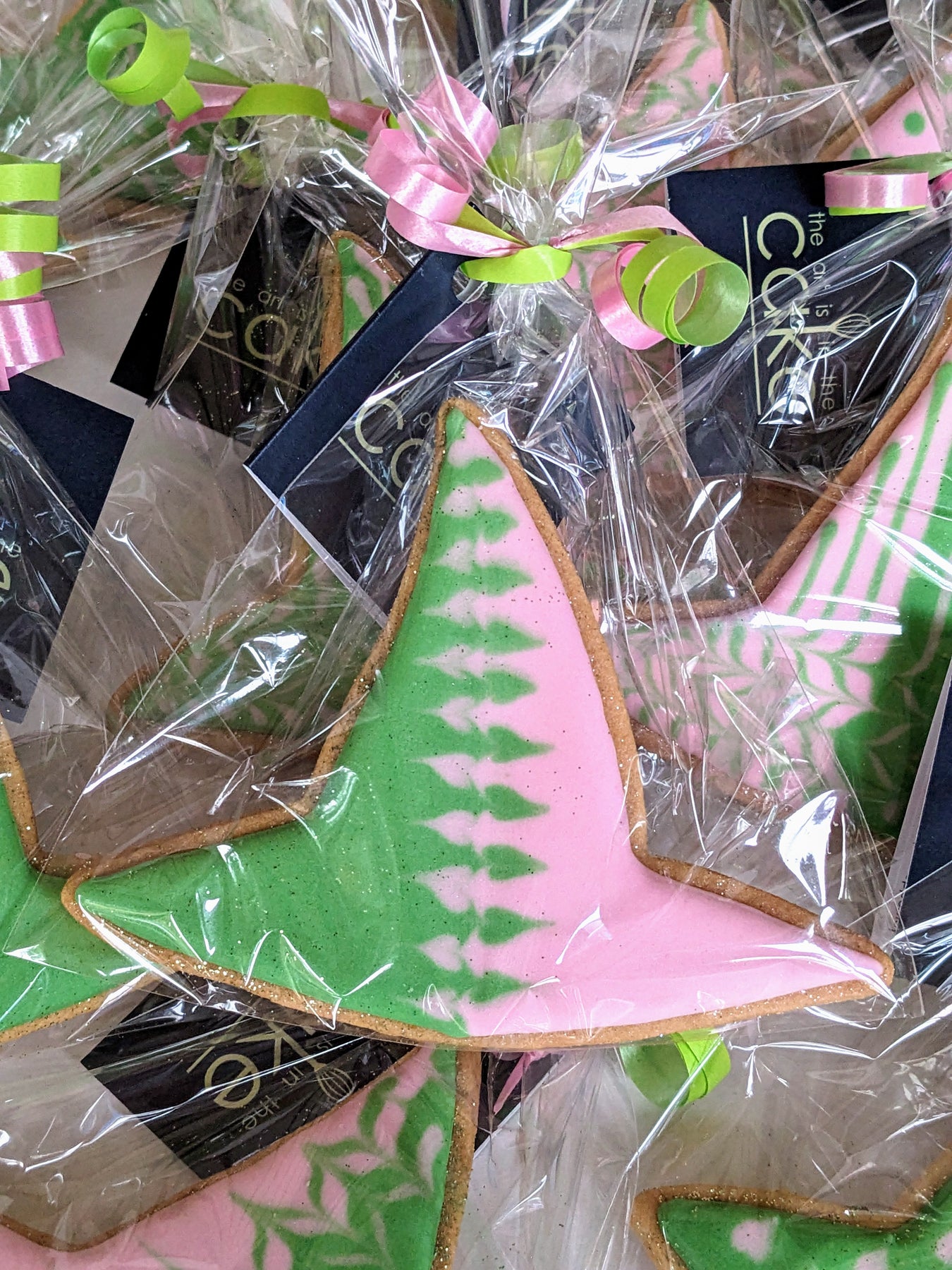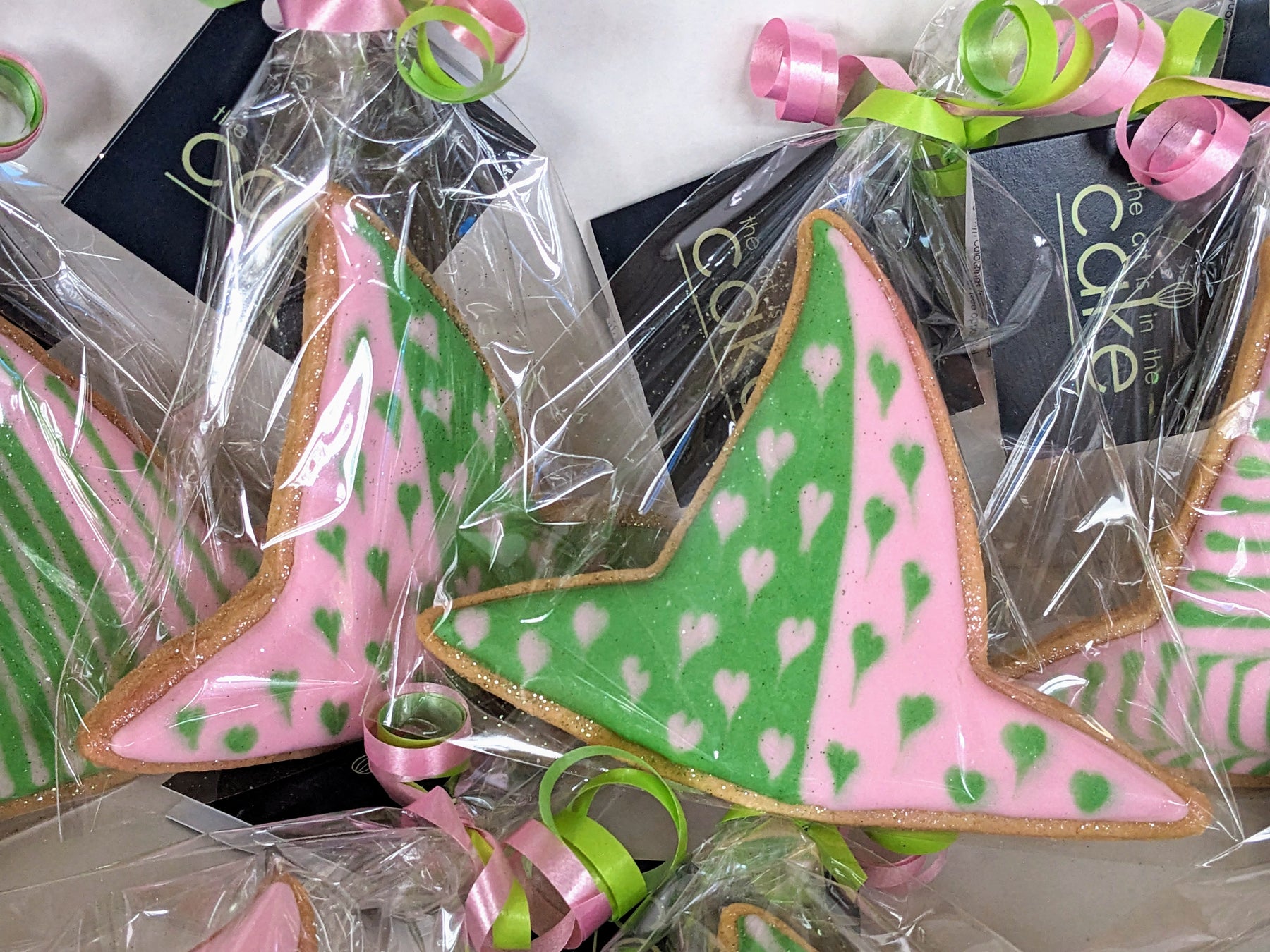 ICING:  Icing sugar, water, Meriwhite egg white powder (wheat starch, dried egg albumen, sugar, modified starch, acidity regulators (calcium lactate, tartaric acid, cream of tartar, lactic acid), dextrose, stabiliser (guar gum)); Pink colouring: Glucose syrup, water, sugar, gelling agent (agar E406), acidity regulator (citric acid E330), colour (carmoisine *E122), preservative (potassium sorbate E202).  May contain mlik, soys, nuts and sulphites; Green colouring: Humectant (E422), colours (E155, *E102, E133), water, modified starch (tapioca); Pink glitter:  FDA-compliant ingredients:  Mica-based pearlescent, dextrose, iron oxide, Red 40 Lake, Yellow 5, 6 Lake, Blue 2 Lake. Green glitter: FDA-compliant ingredients:  Mica-based Pearlescent, dextrose, Yellow 5 Lake, Blue 1, 2 Lake