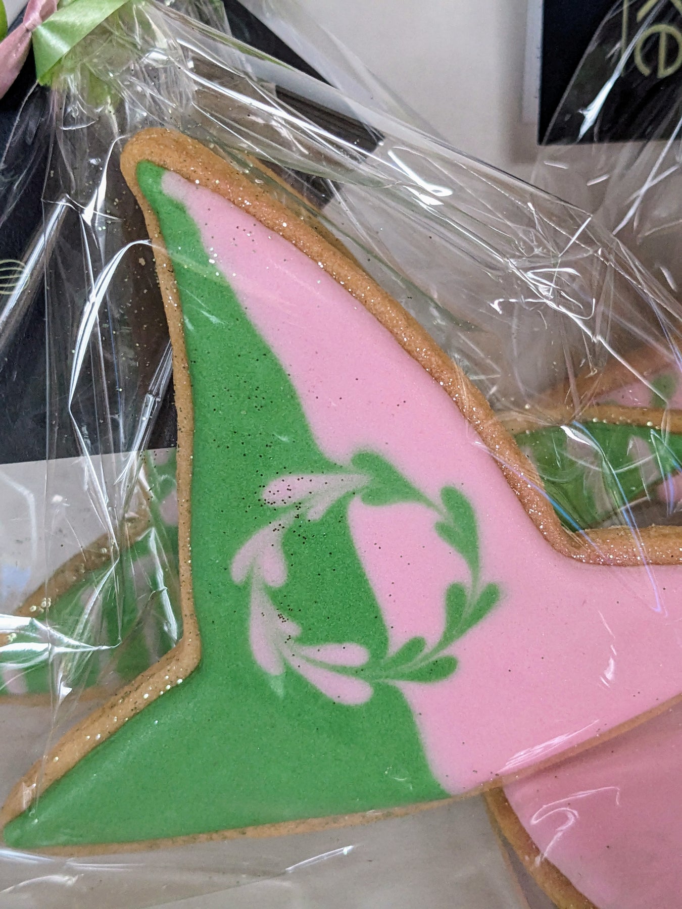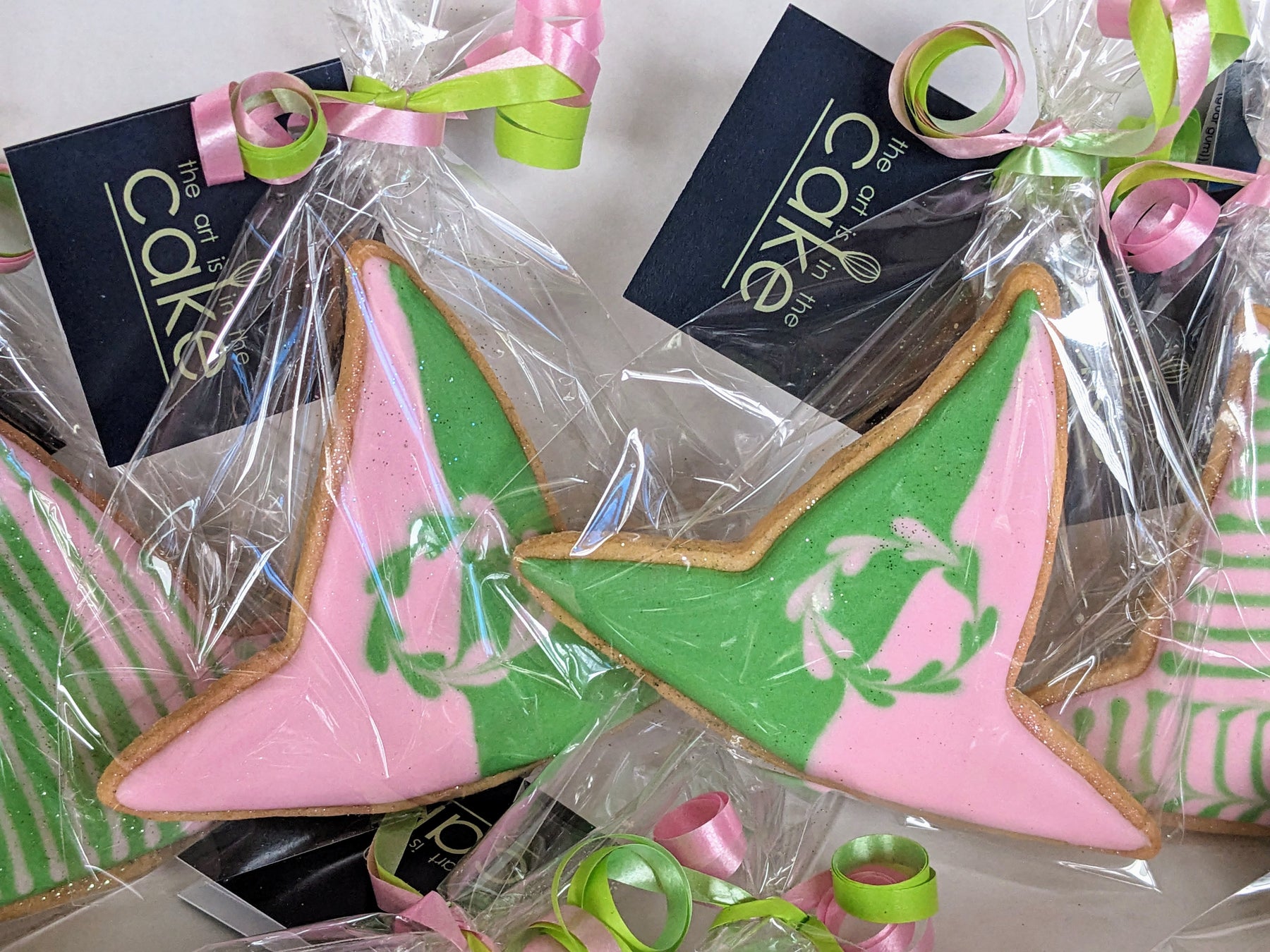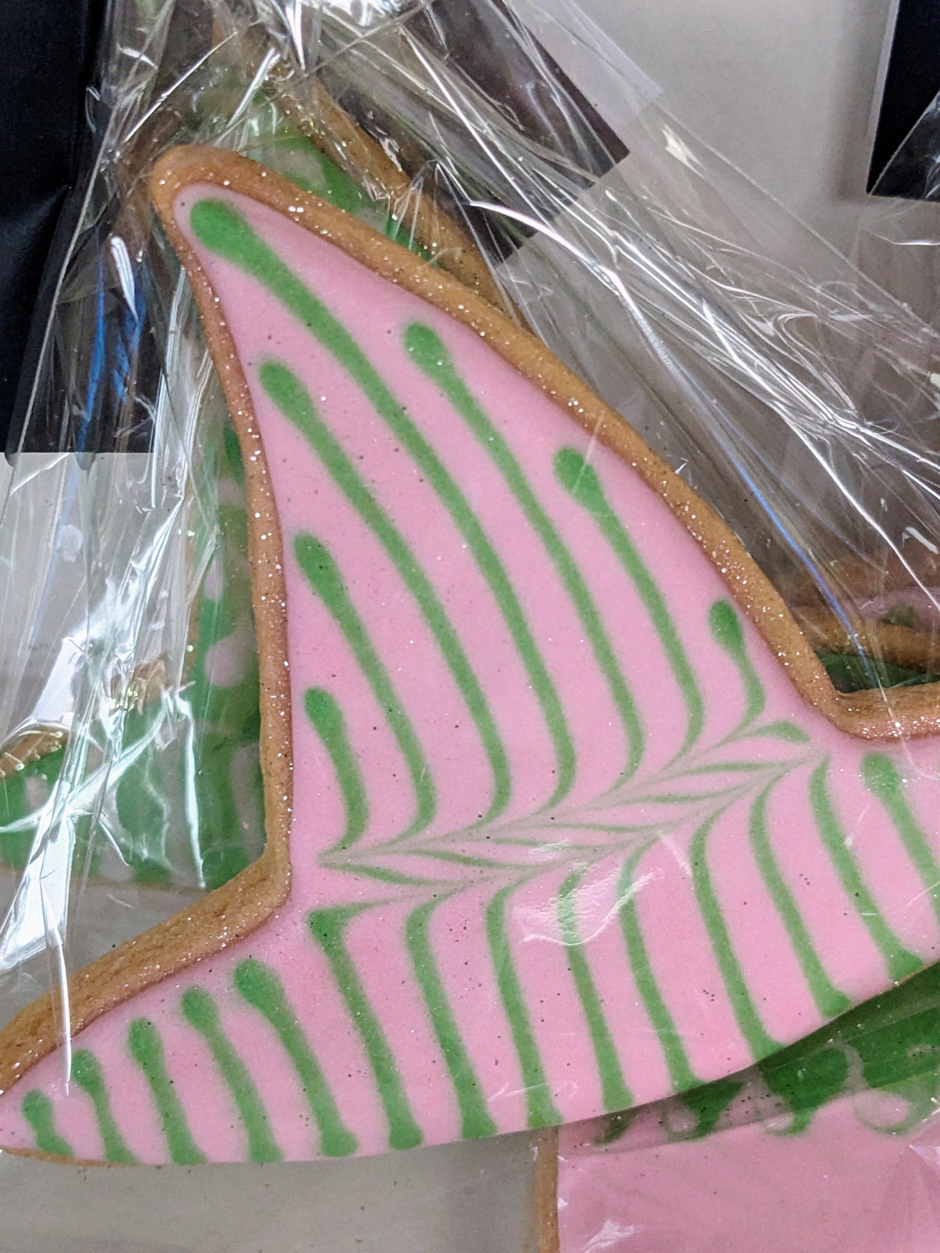 ICING:  Icing sugar, water, Meriwhite egg white powder (wheat starch, dried egg albumen, sugar, modified starch, acidity regulators (calcium lactate, tartaric acid, cream of tartar, lactic acid), dextrose, stabiliser (guar gum)); Pink colouring: Glucose syrup, water, sugar, gelling agent (agar E406), acidity regulator (citric acid E330), colour (carmoisine *E122), preservative (potassium sorbate E202).  May contain mlik, soys, nuts and sulphites; Green colouring: Humectant (E422), colours (E155, *E102, E133), water, modified starch (tapioca); Pink glitter:  FDA-compliant ingredients:  Mica-based pearlescent, dextrose, iron oxide, Red 40 Lake, Yellow 5, 6 Lake, Blue 2 Lake. Green glitter: FDA-compliant ingredients:  Mica-based Pearlescent, dextrose, Yellow 5 Lake, Blue 1, 2 Lake